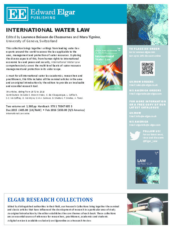 Edited by Laurence Boisson de Chazournes and Mara Tignino from the Platform for International Water Law, Faculty of Law of the University of Geneva, and part of the Geneva Water Hub team.